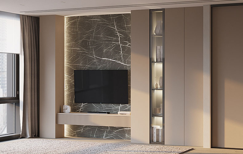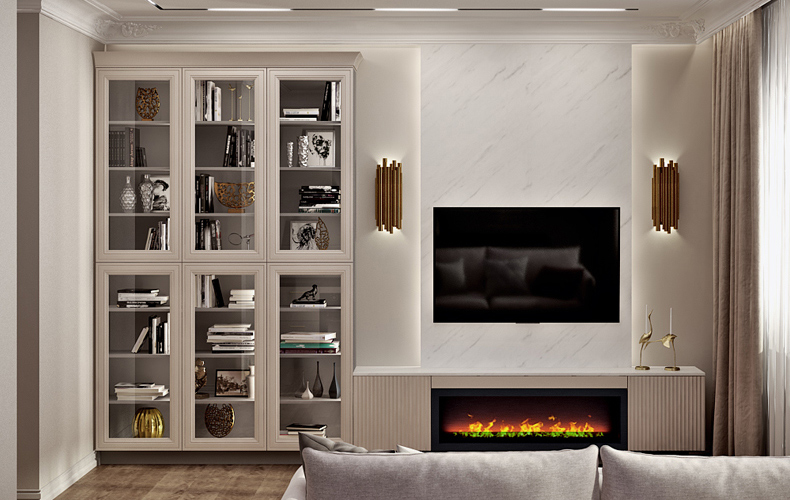 Современная мебель для гостиной с матовыми стеклами