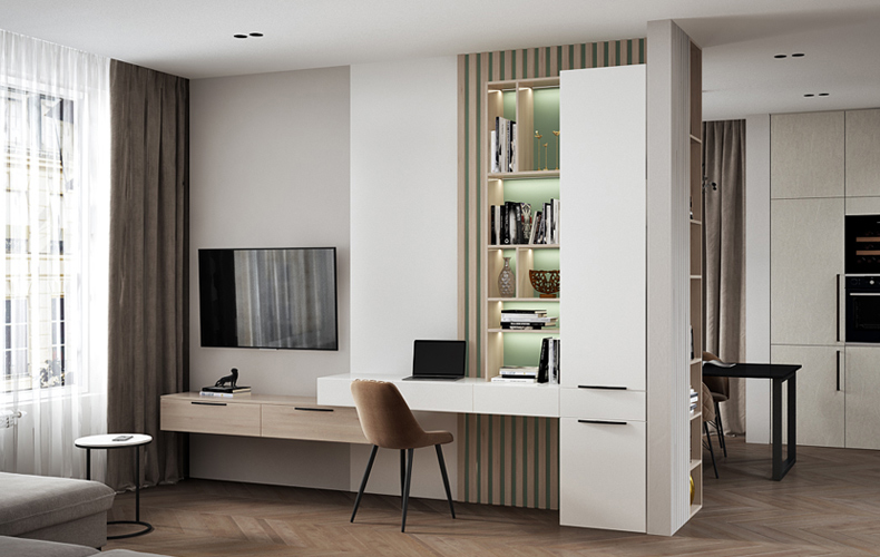Мебель в современном стиле это прежде всего комфорт и удобство использования. Гладкие фасады шкафов, открытые полки, матовые стекла - все это делает мебель функциональной. Использование современных материалов и отделок позволяет создавать комбинации в зависимости от особенностей помещения.