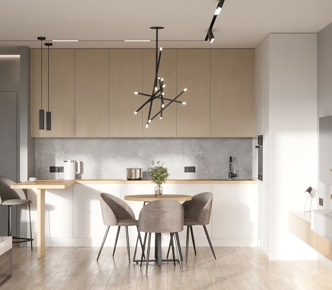 Светлая функциональная квартира в бежевых тонах для семьи из трех человек