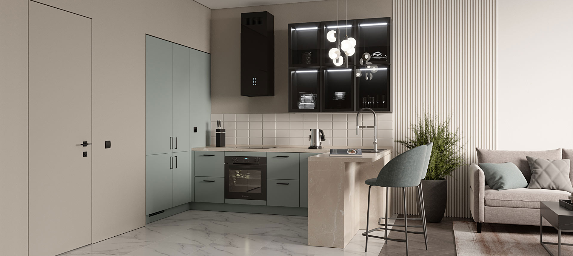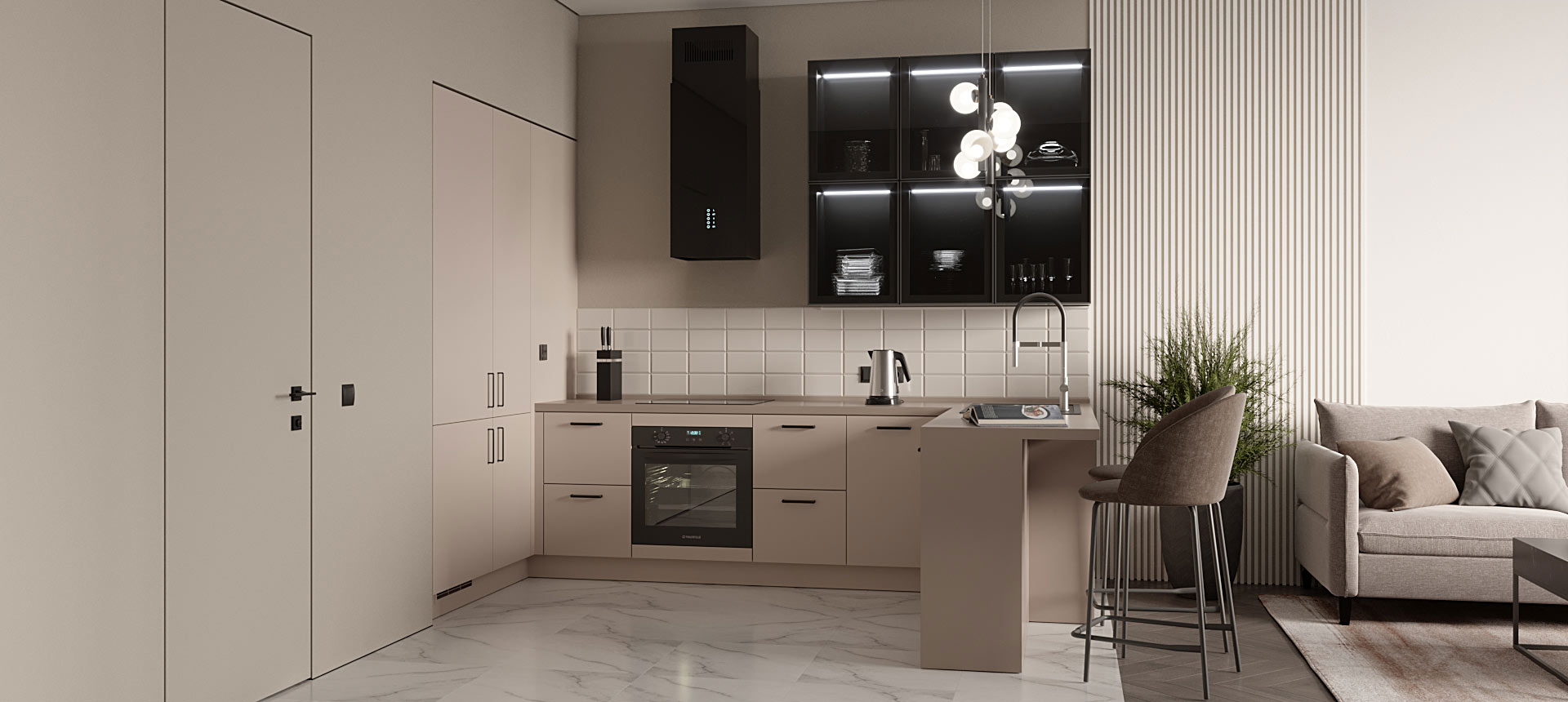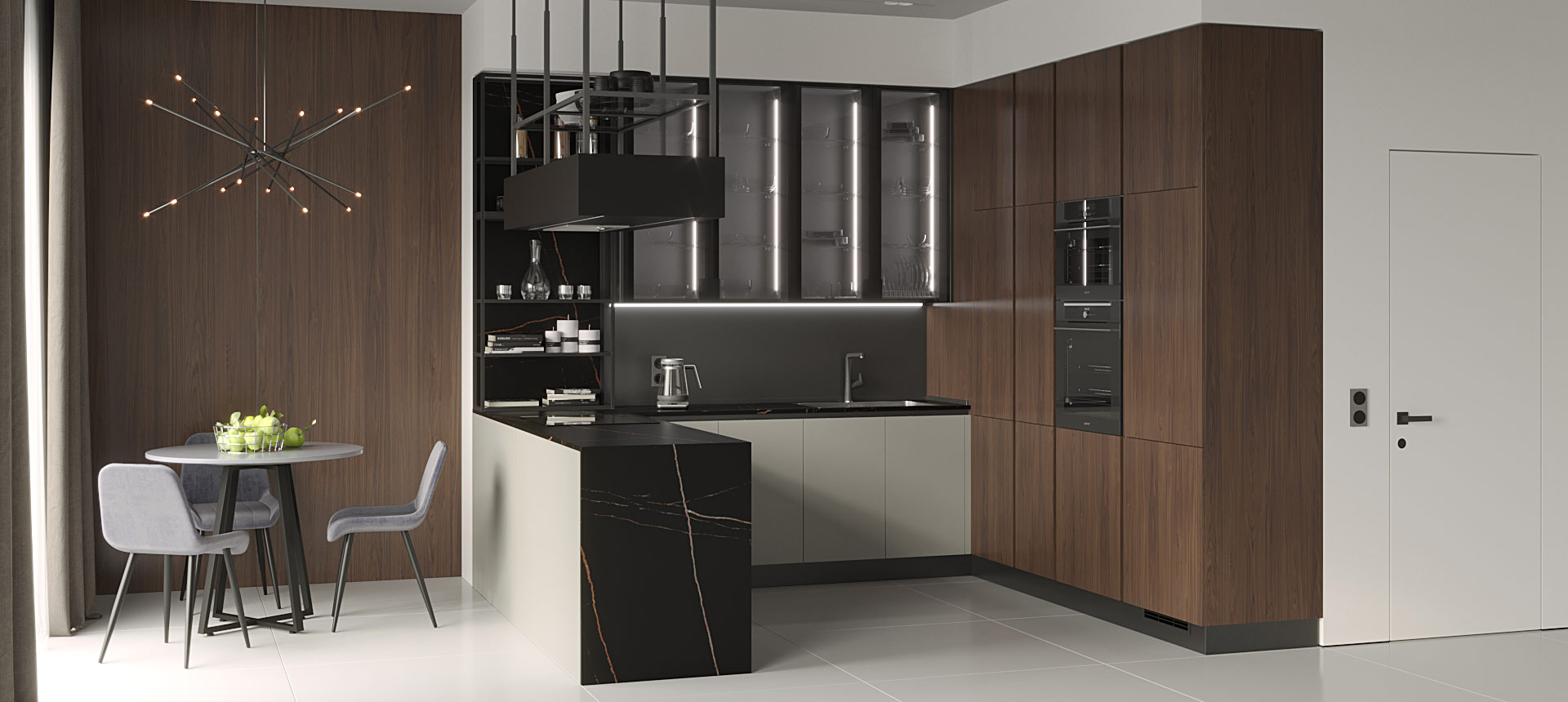 П-образная кухня в кухню-гостиную
