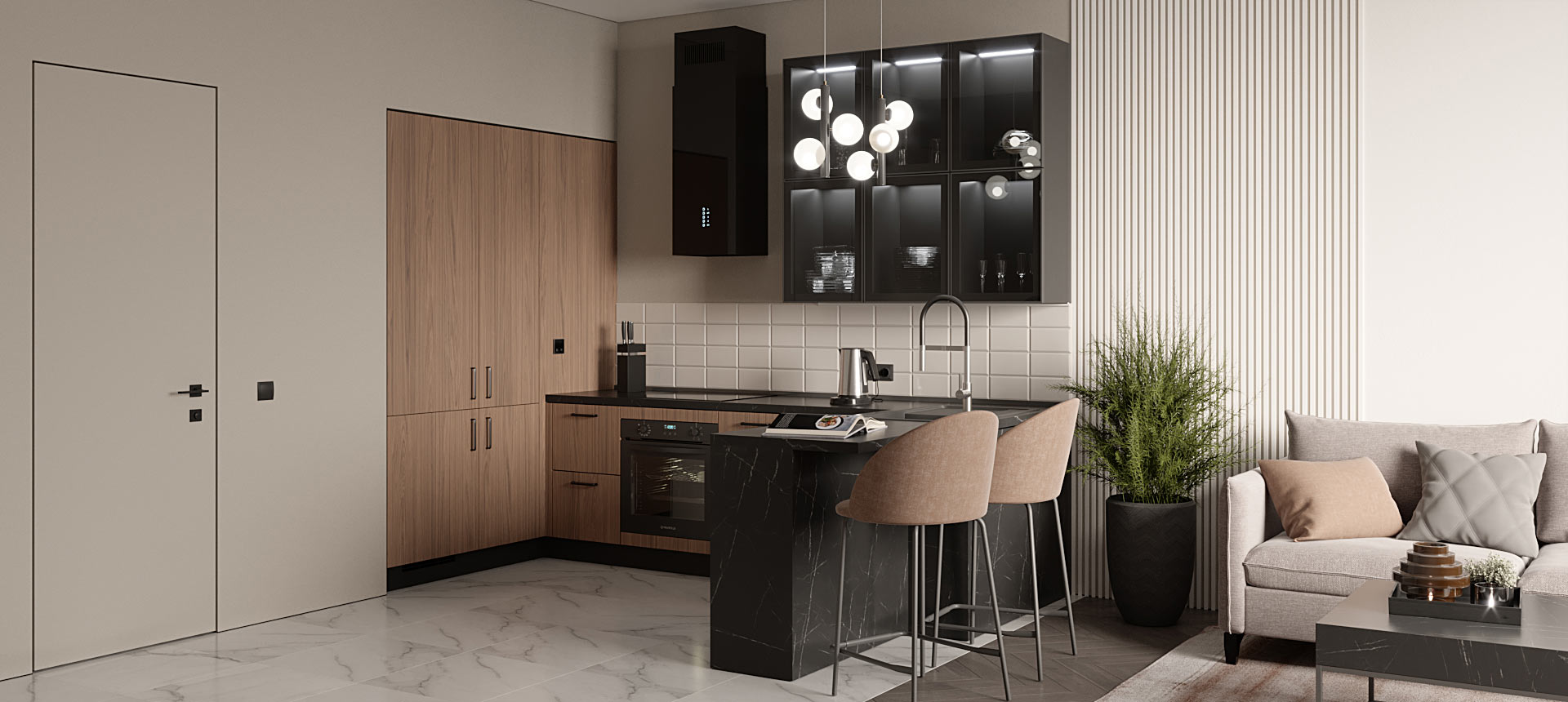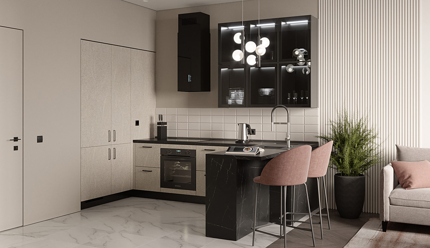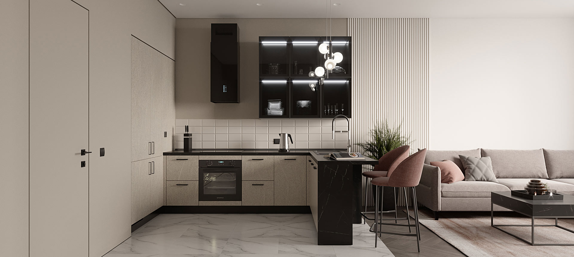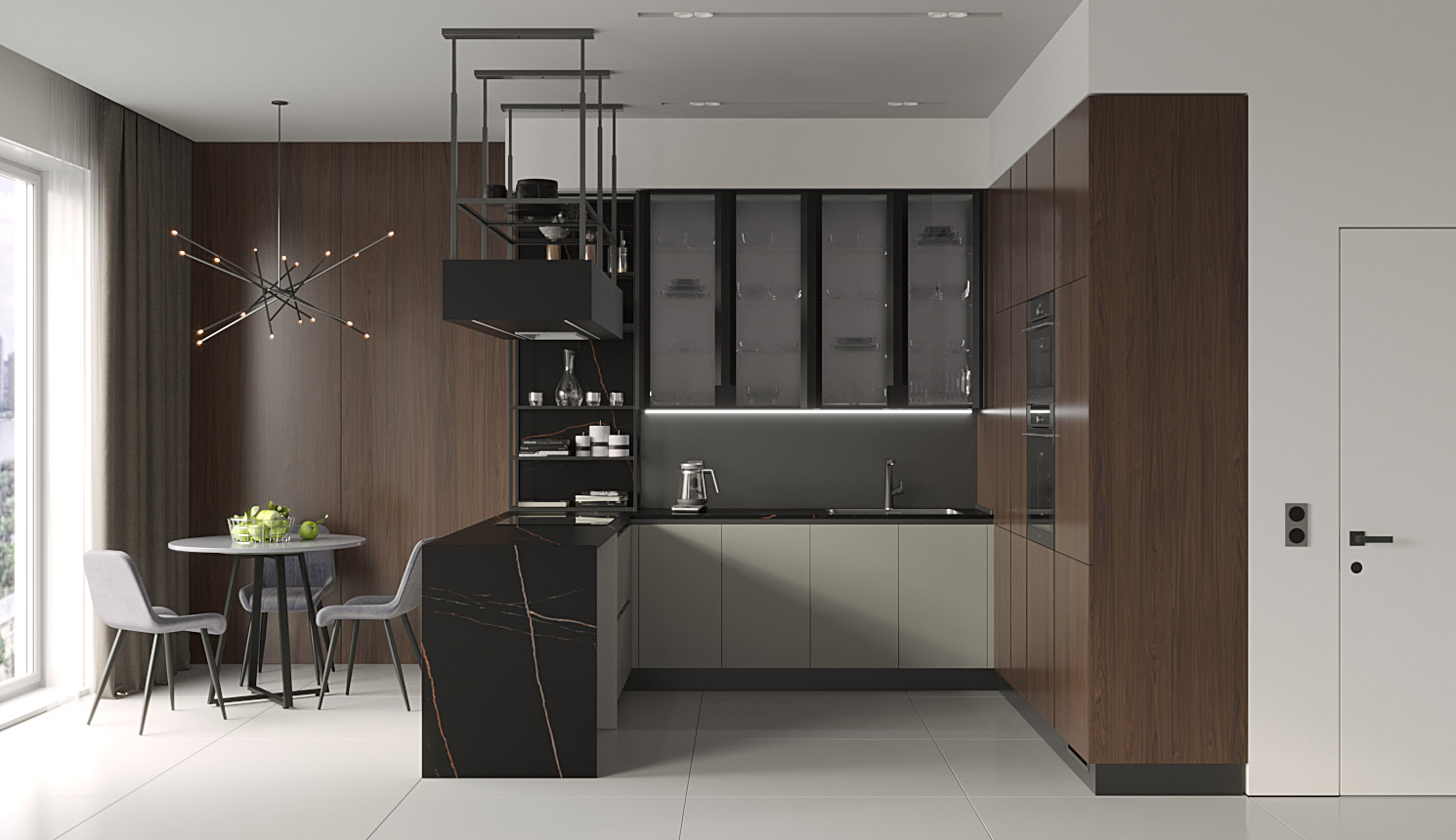 П-образная кухня в кухню-гостиную
