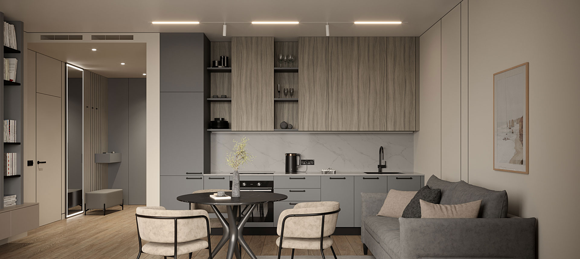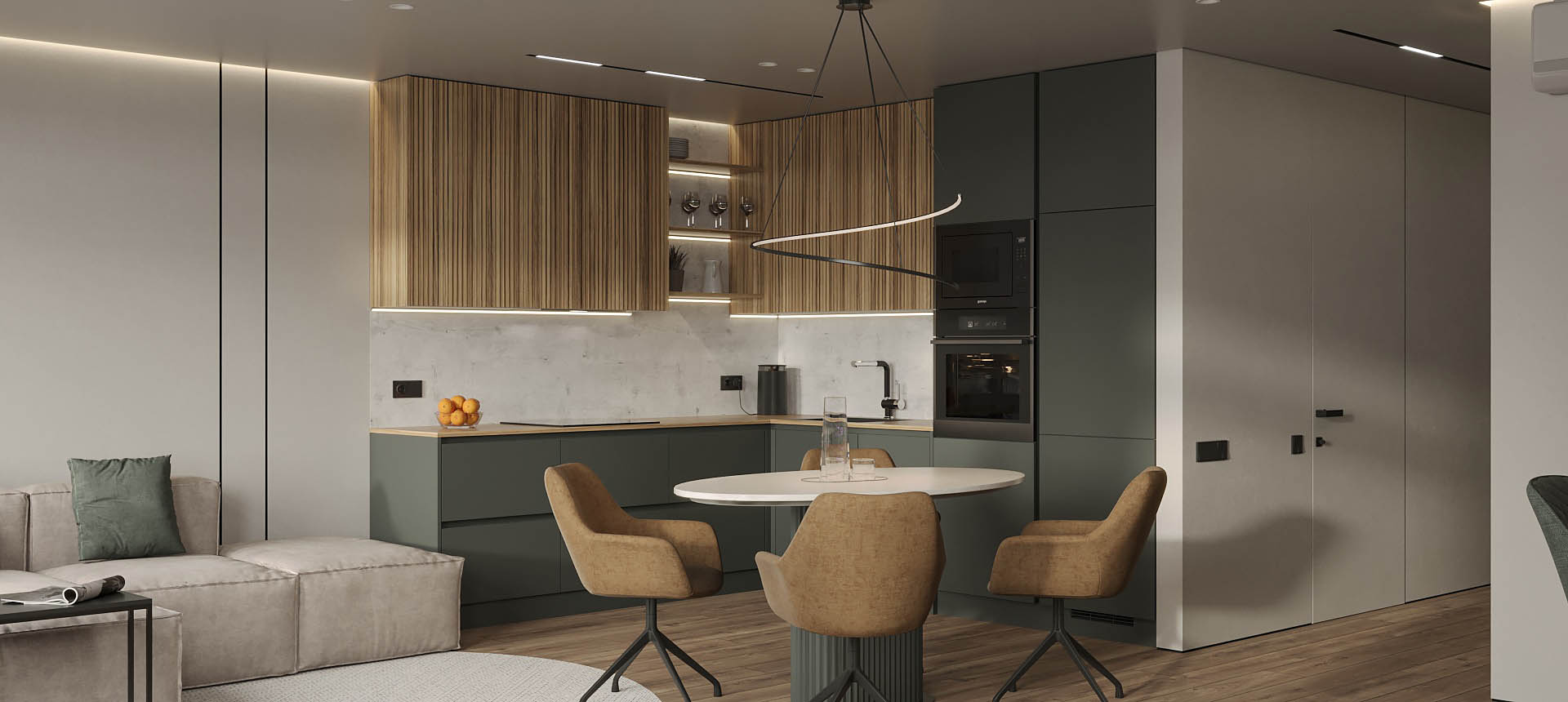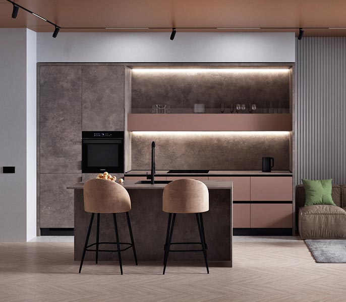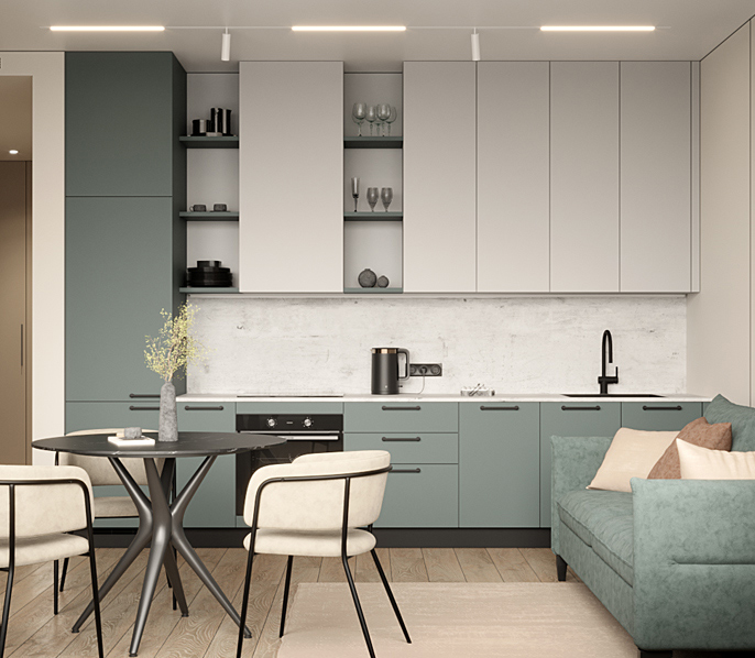 Дизайнеры компании «Стильные Кухни» помогут вам спроектировать мебель для кухни по индивидуальным размерам с учетом ваших потребностей. В каталоге представлены модели для вдохновения, но еще больше вариантов — в любом из наших салонов. Запишитесь в салон, расскажите дизайнеру о своих пожеланиях, за два часа создайте дизайн-проект с учетом всех ваших пожеланий — и уже через две недели вы получите качественную и современную кухню. Такие услуги, как создание проекта, вызов замерщика, доставка, сборка и установка, осуществляются бесплатно. При необходимости можно выбрать доступные варианты рассрочки или оформить кредит на покупку.