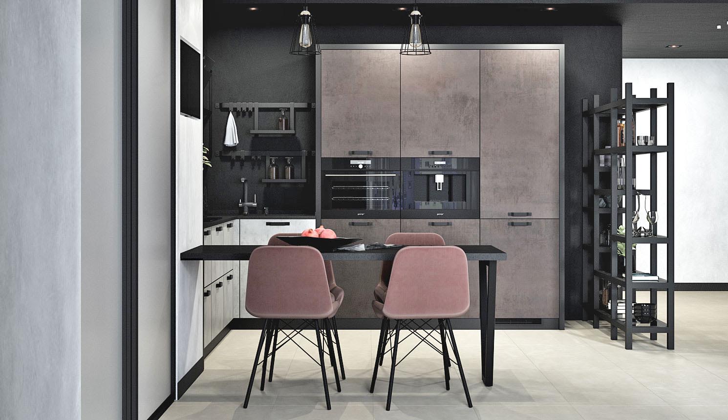 Кухня в стиле лофт и вместительный шкаф для новостройки в Санкт-Петербурге