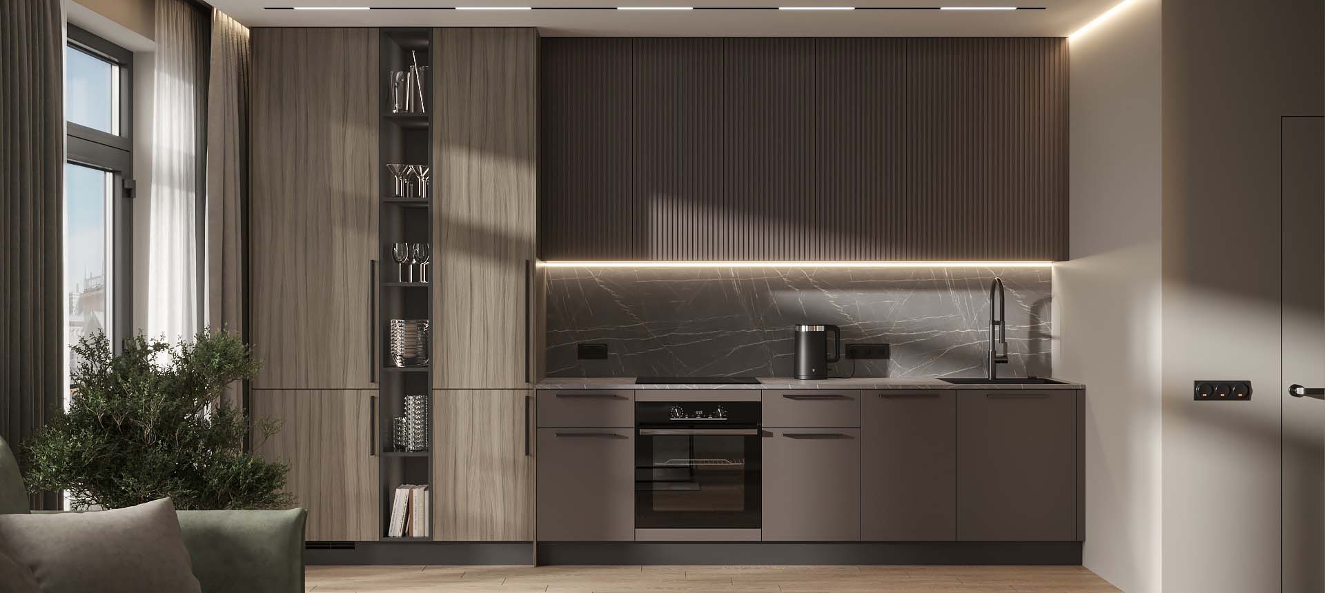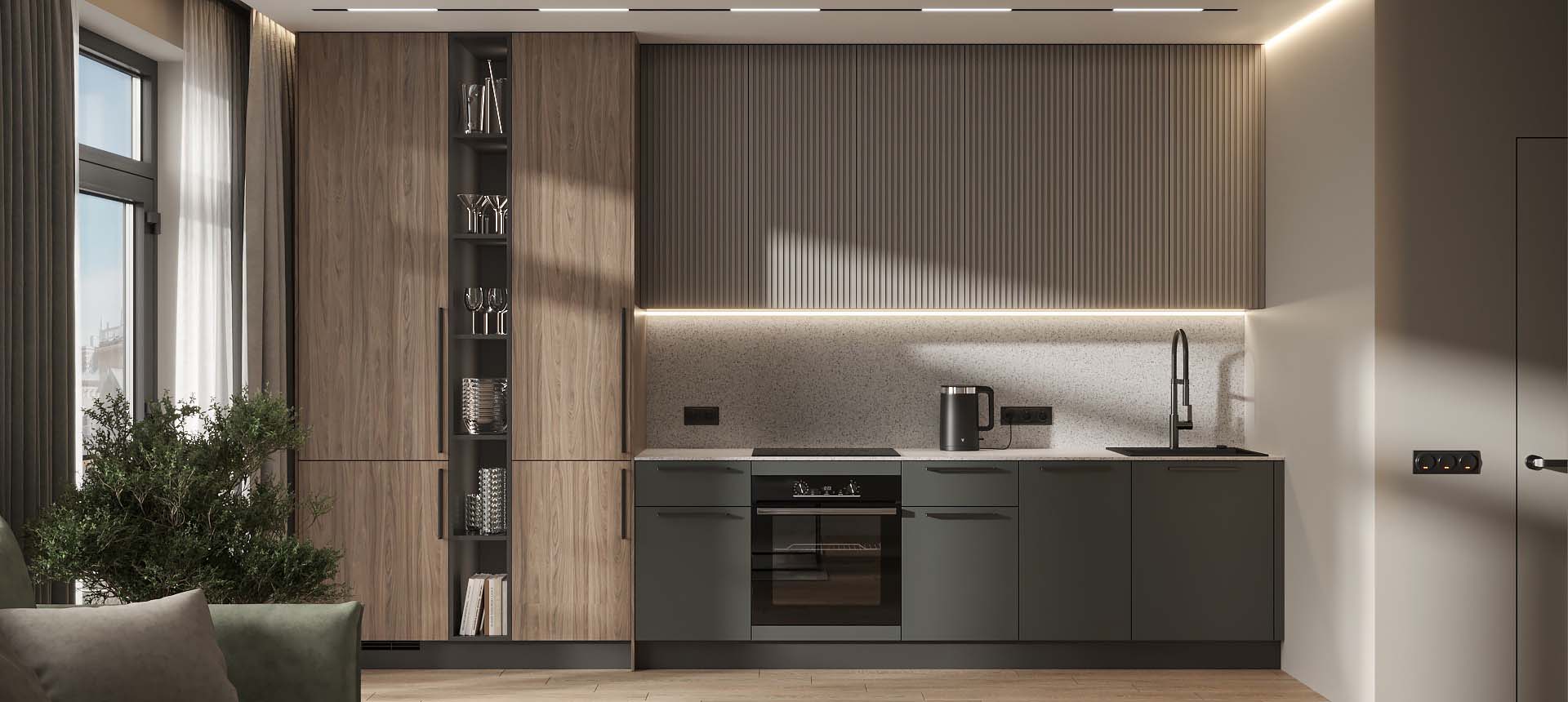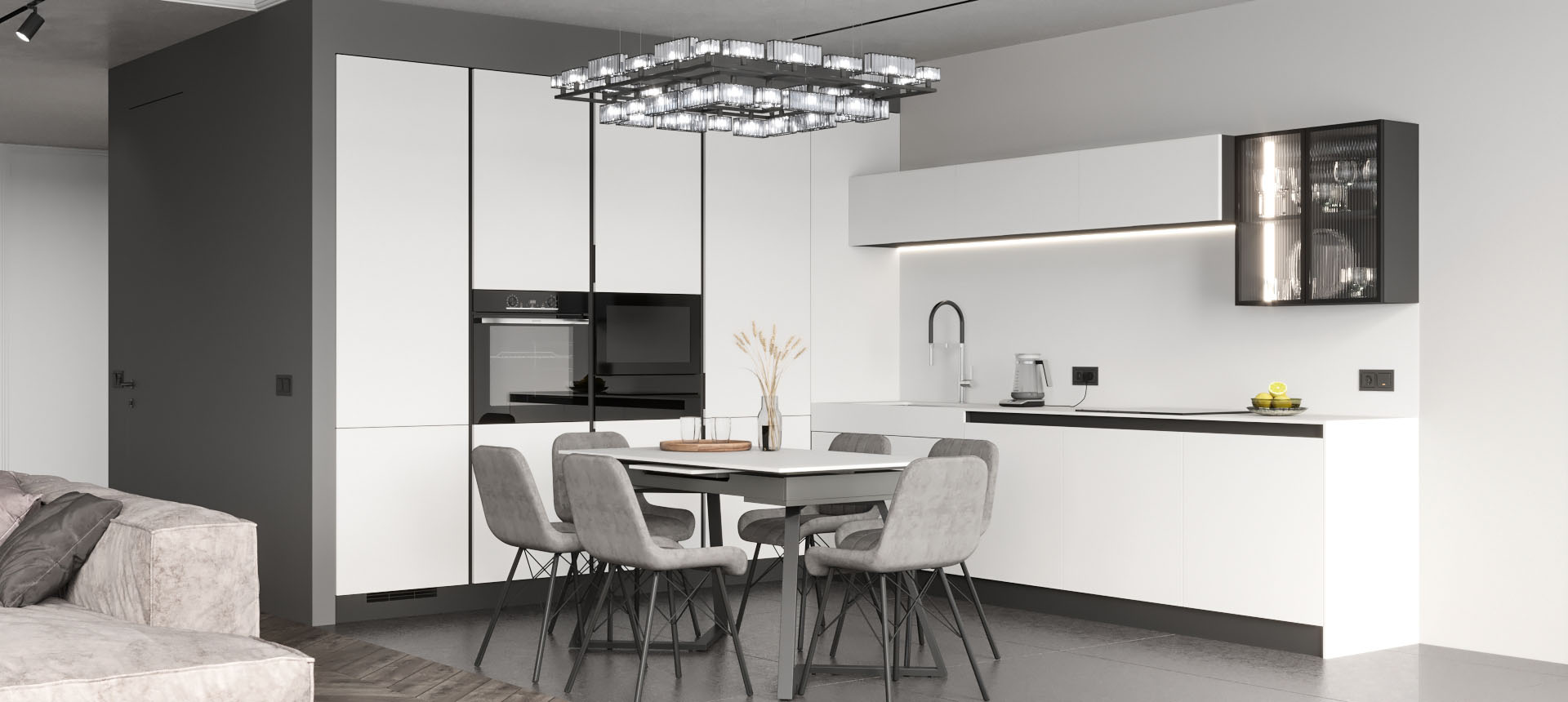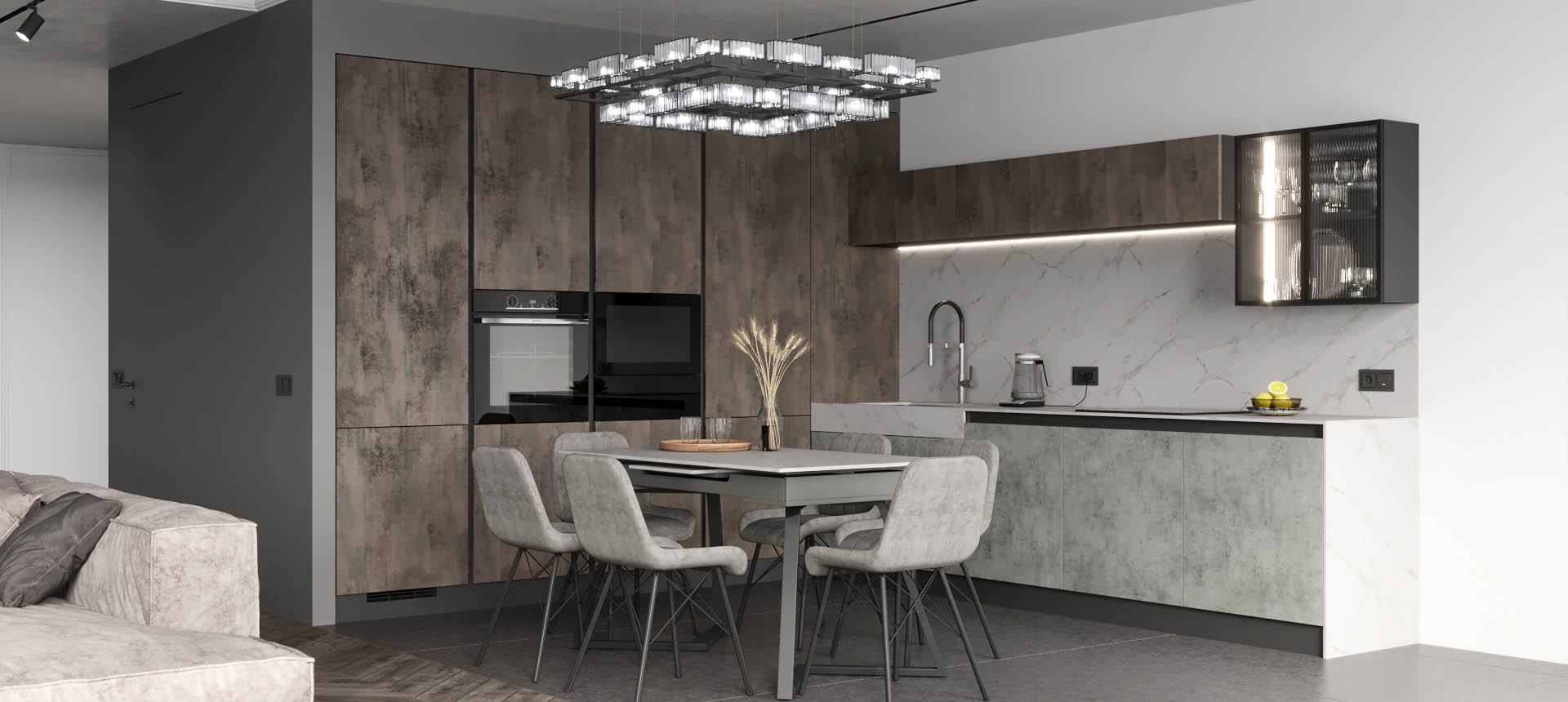 Кухня в стиле лофт и вместительный шкаф для новостройки в Санкт-Петербурге