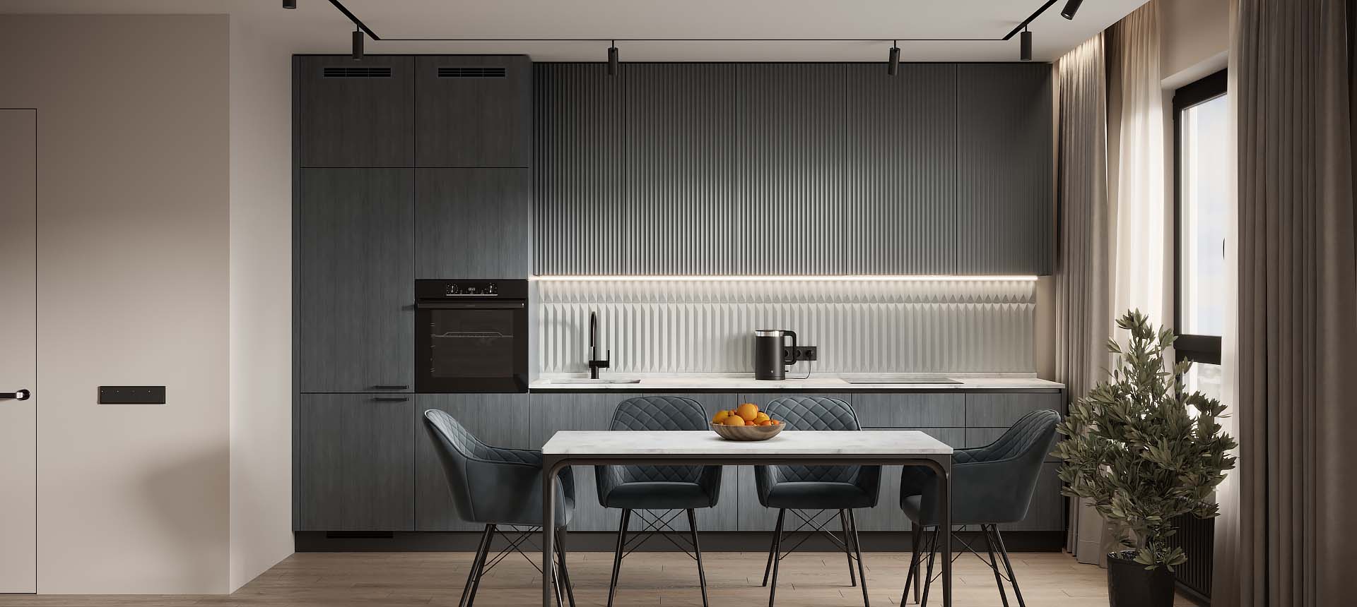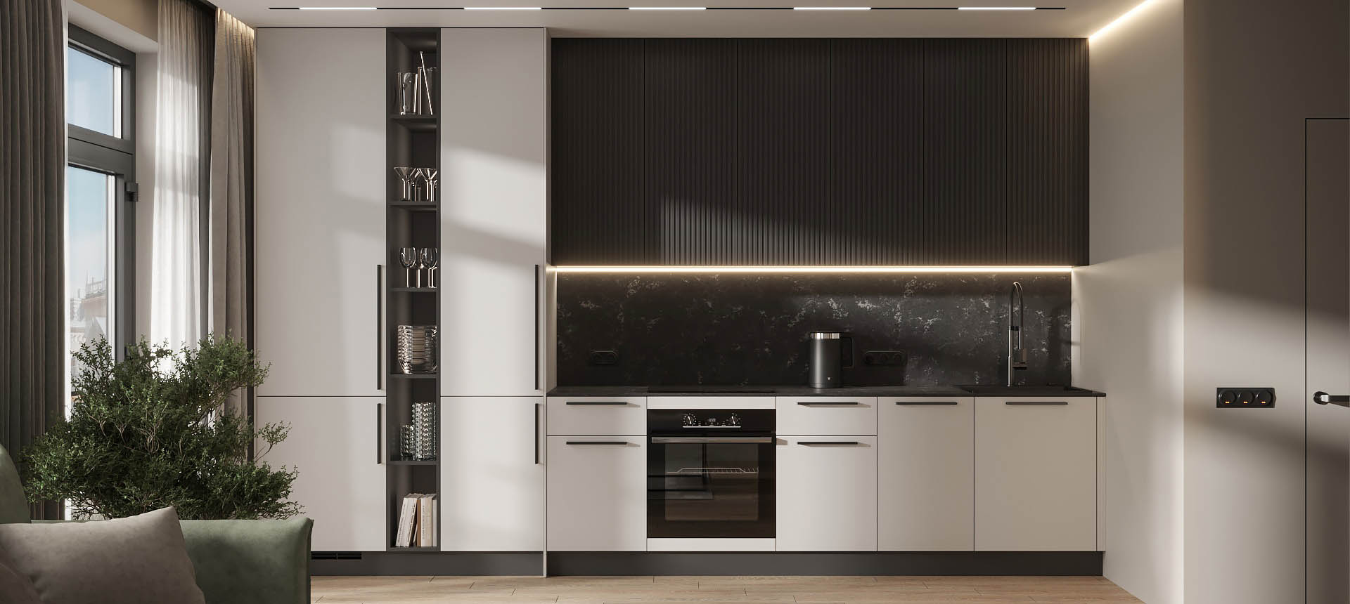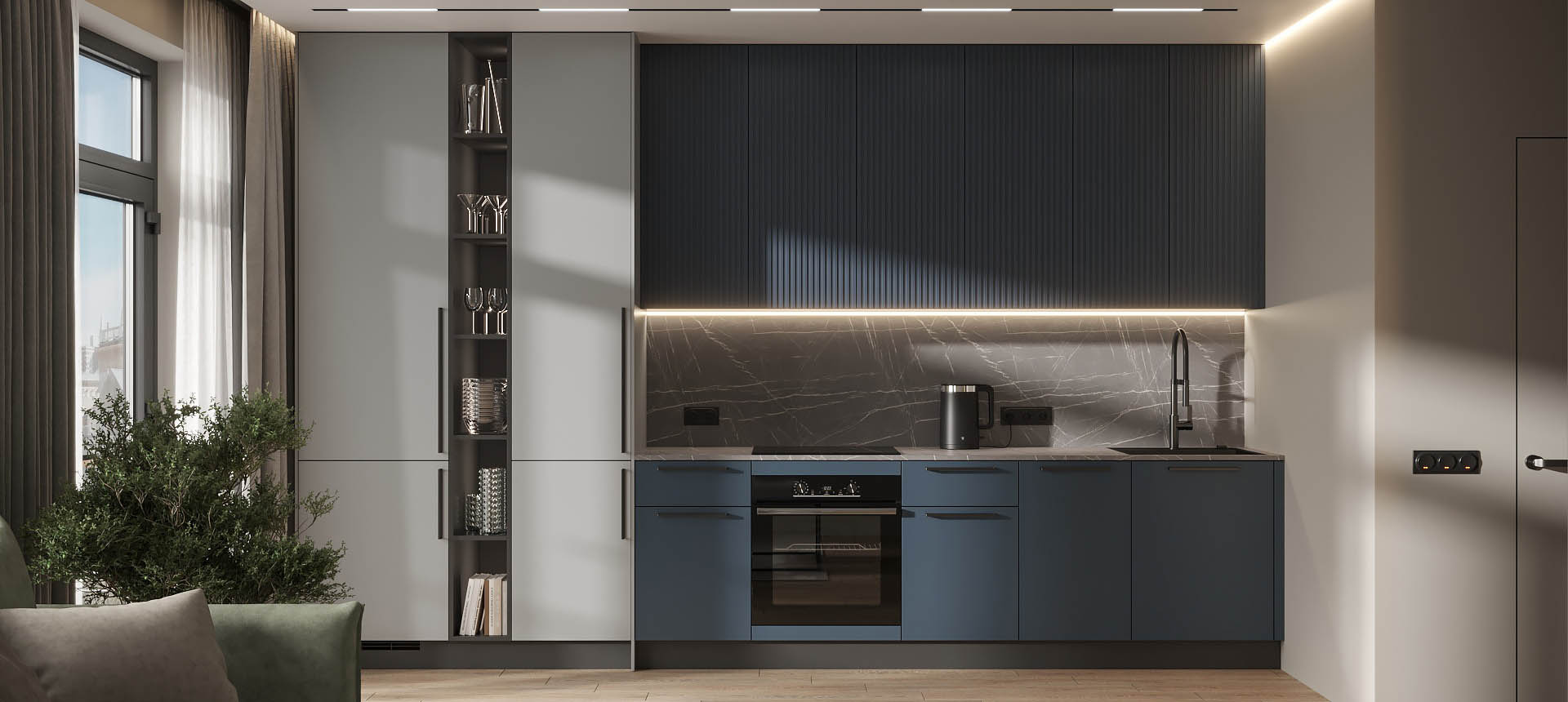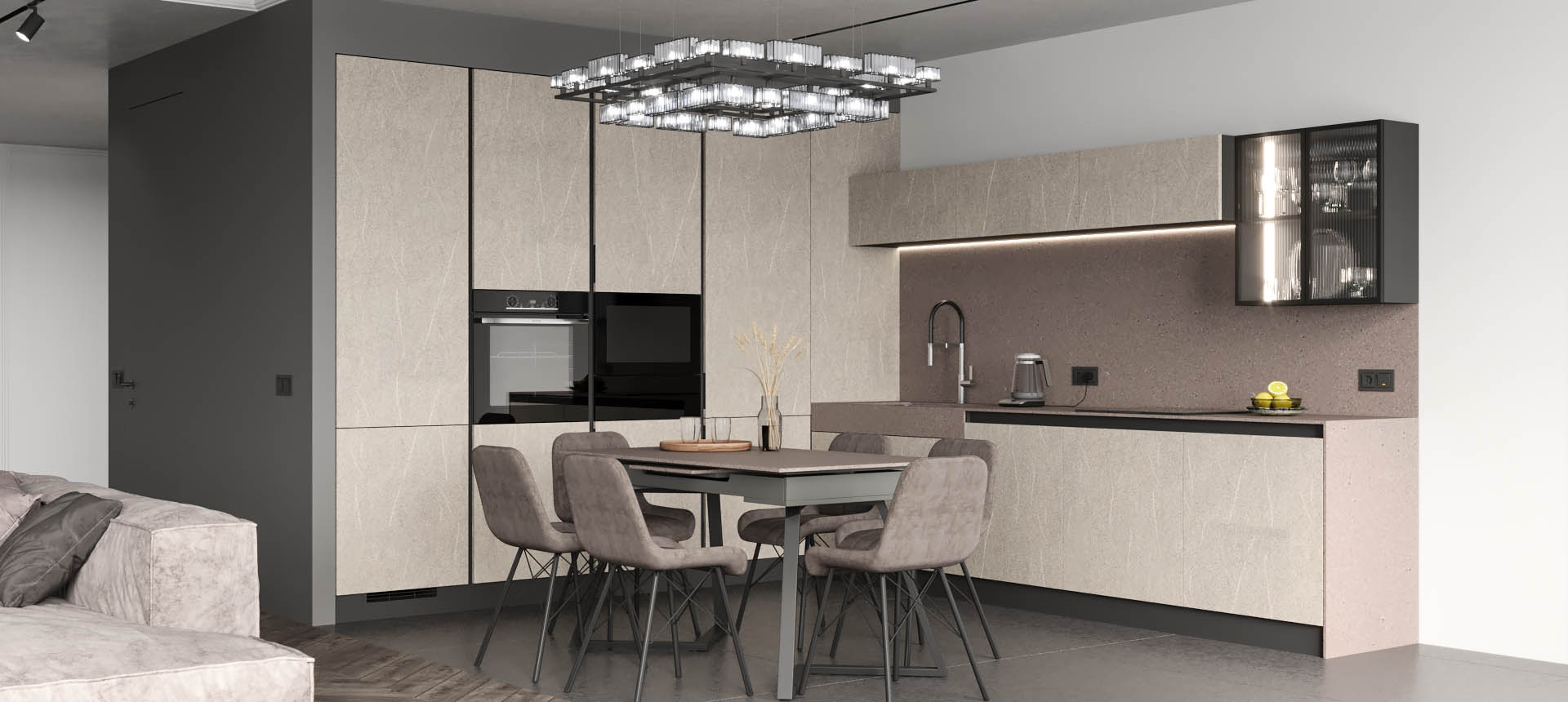 Кухня в стиле лофт и вместительный шкаф для новостройки в Санкт-Петербурге