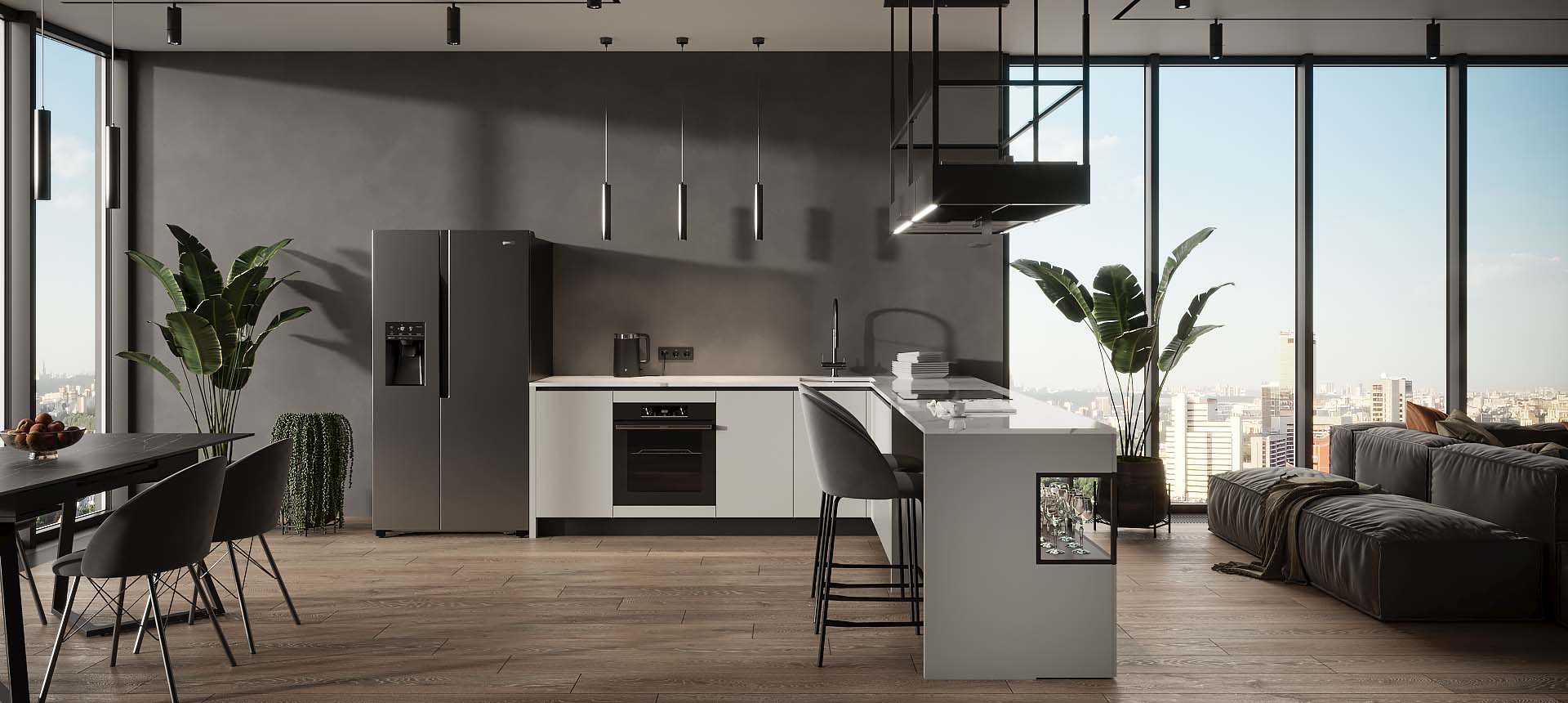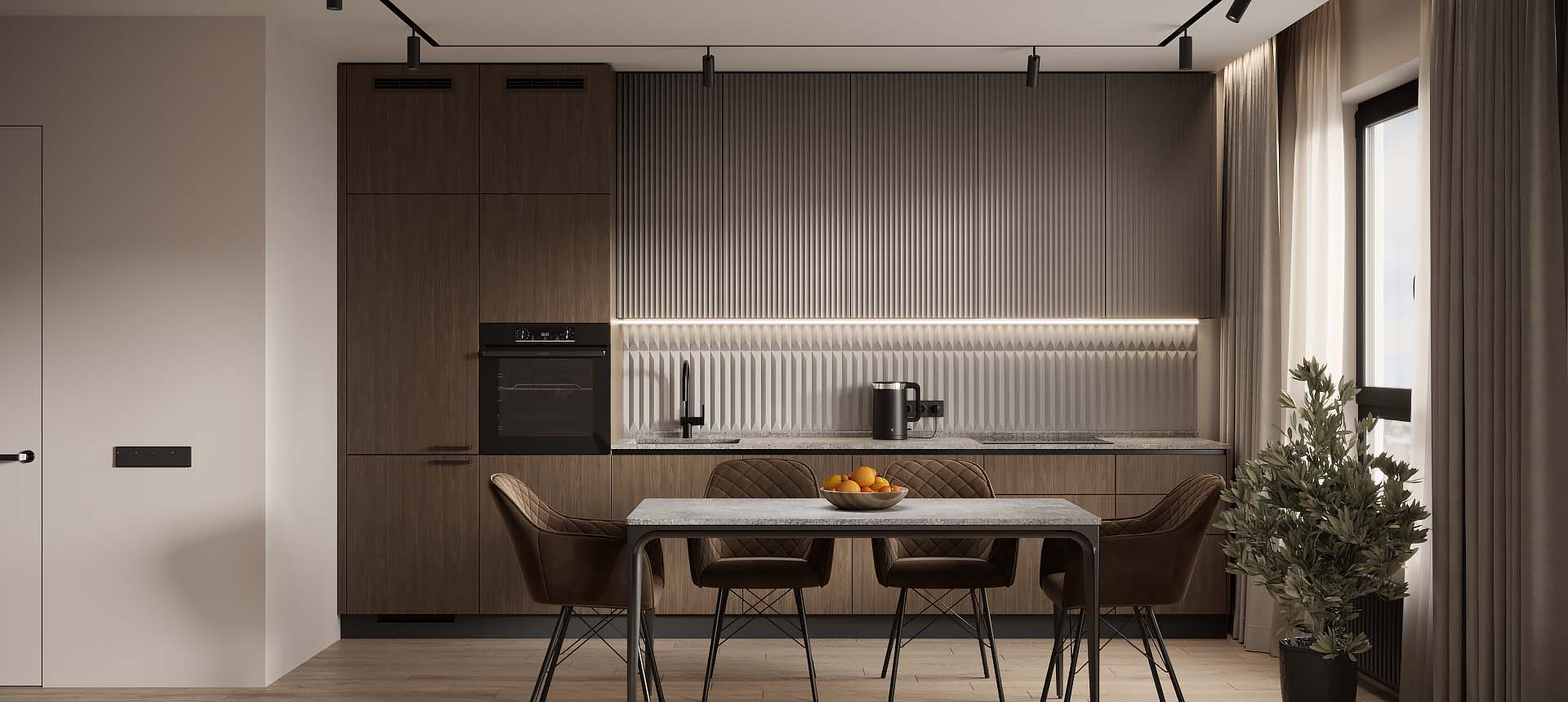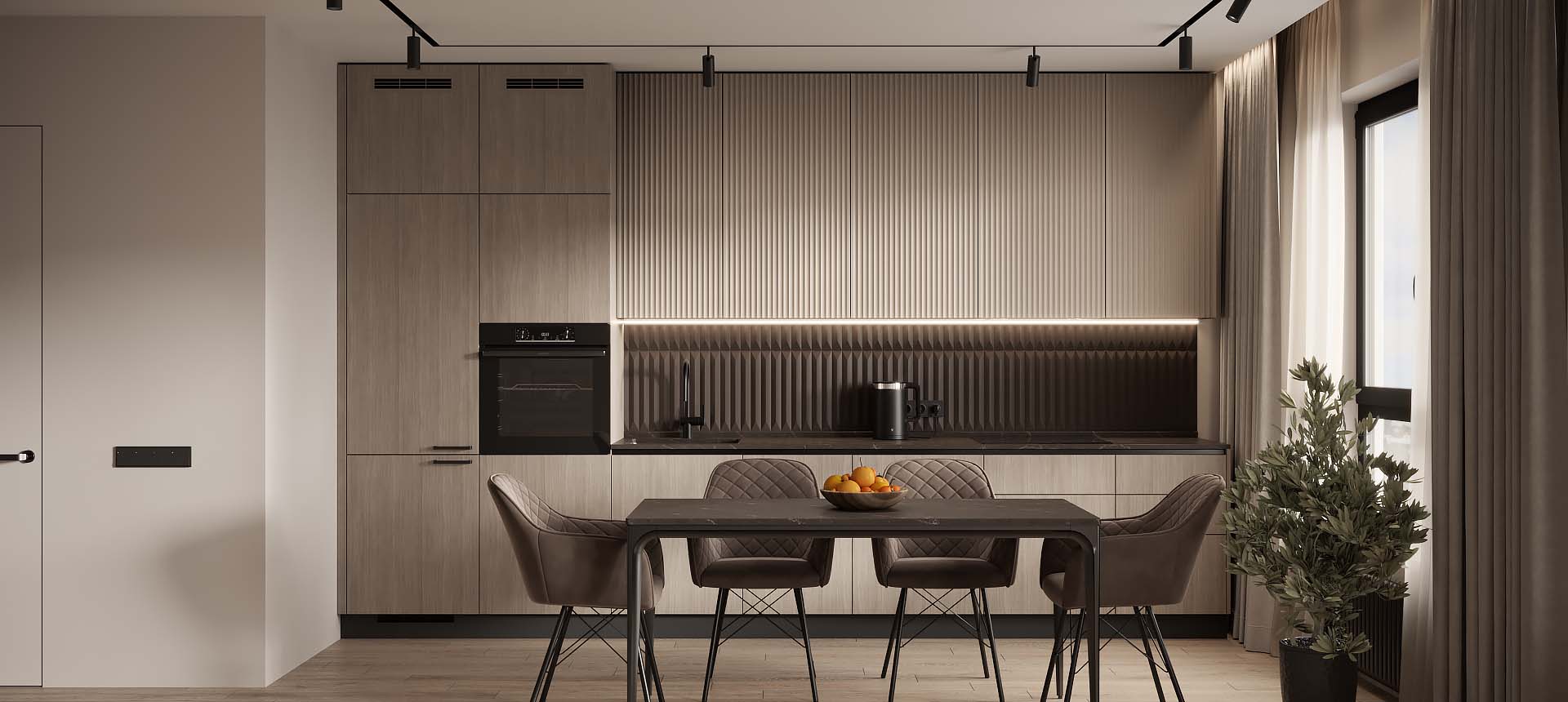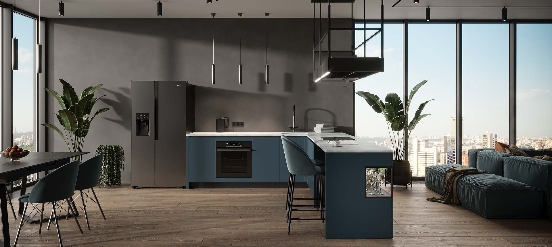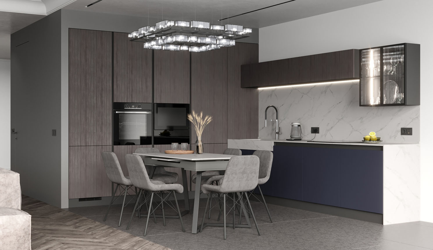 Кухня в стиле лофт и вместительный шкаф для новостройки в Санкт-Петербурге