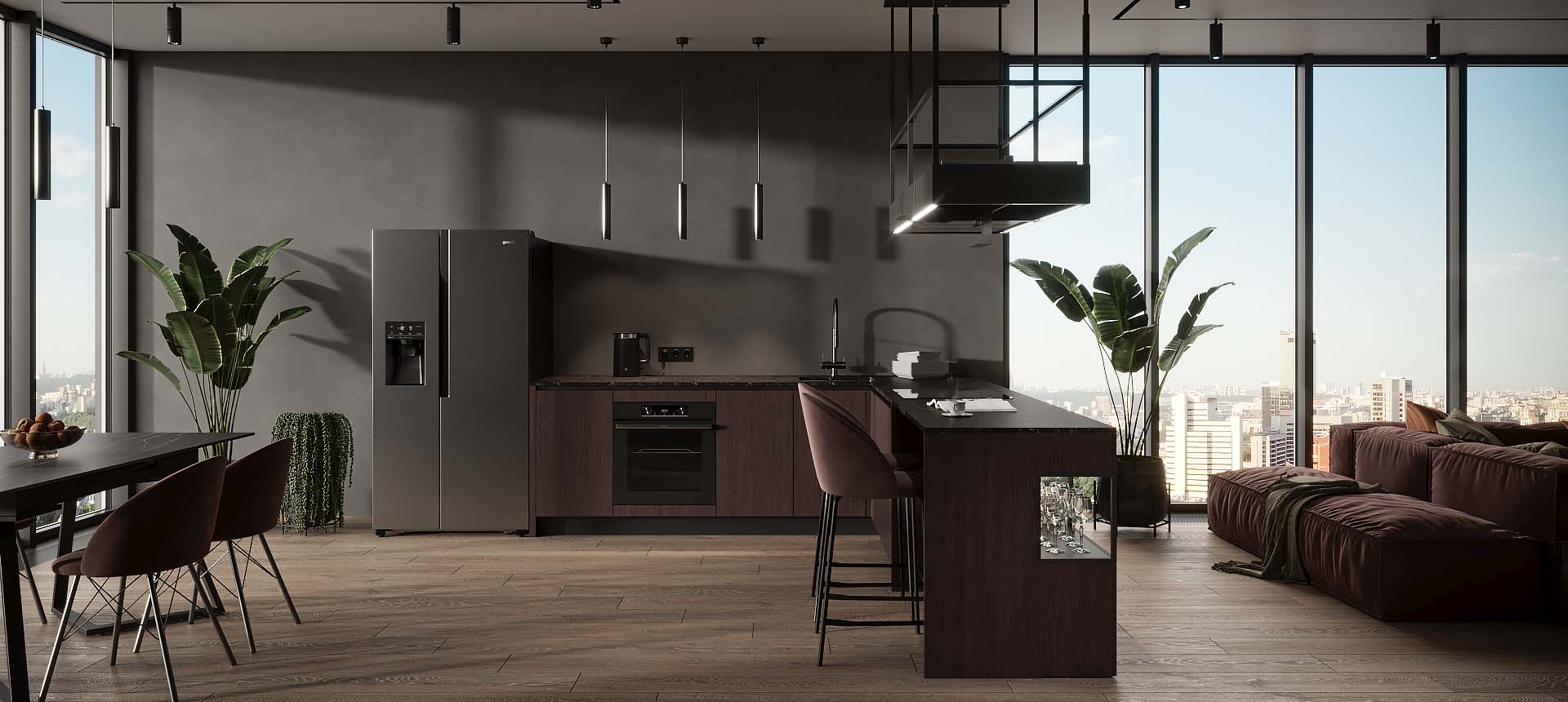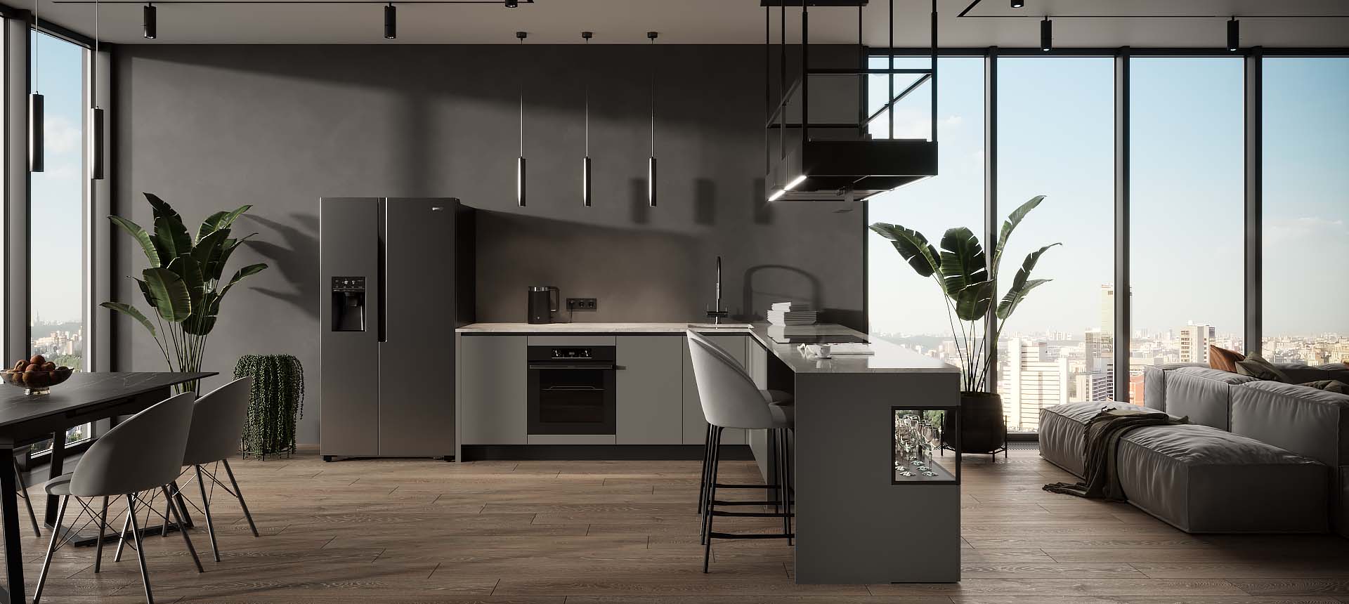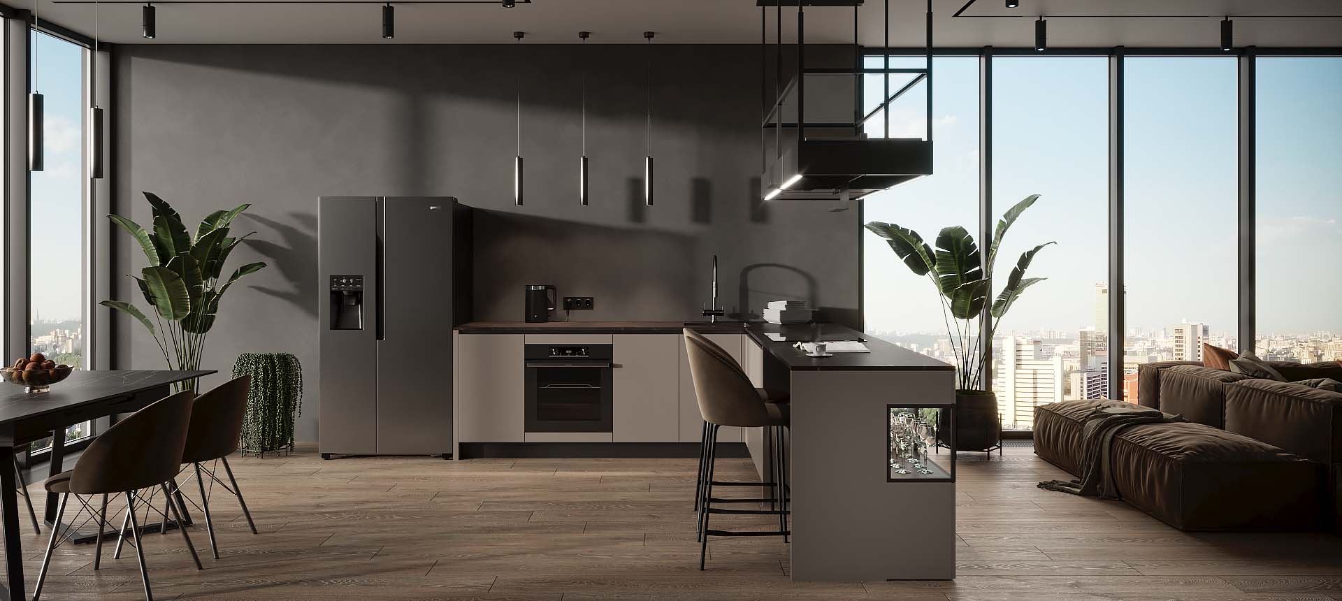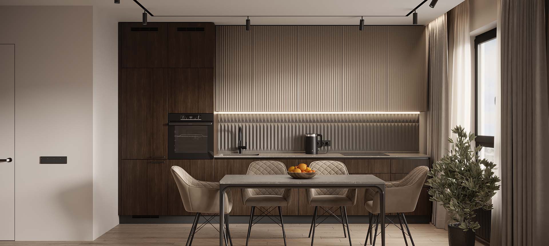 Кухня в стиле лофт и вместительный шкаф для новостройки в Санкт-Петербурге