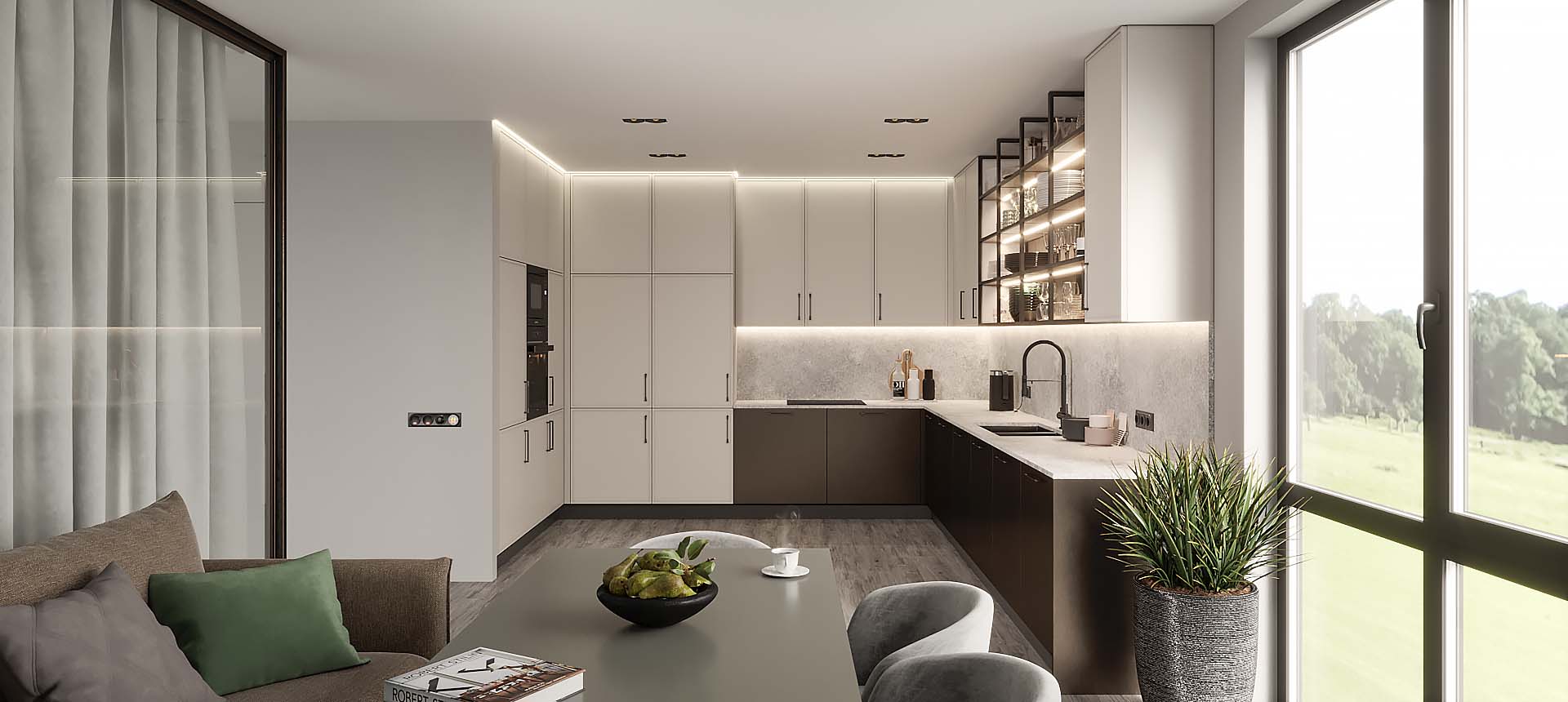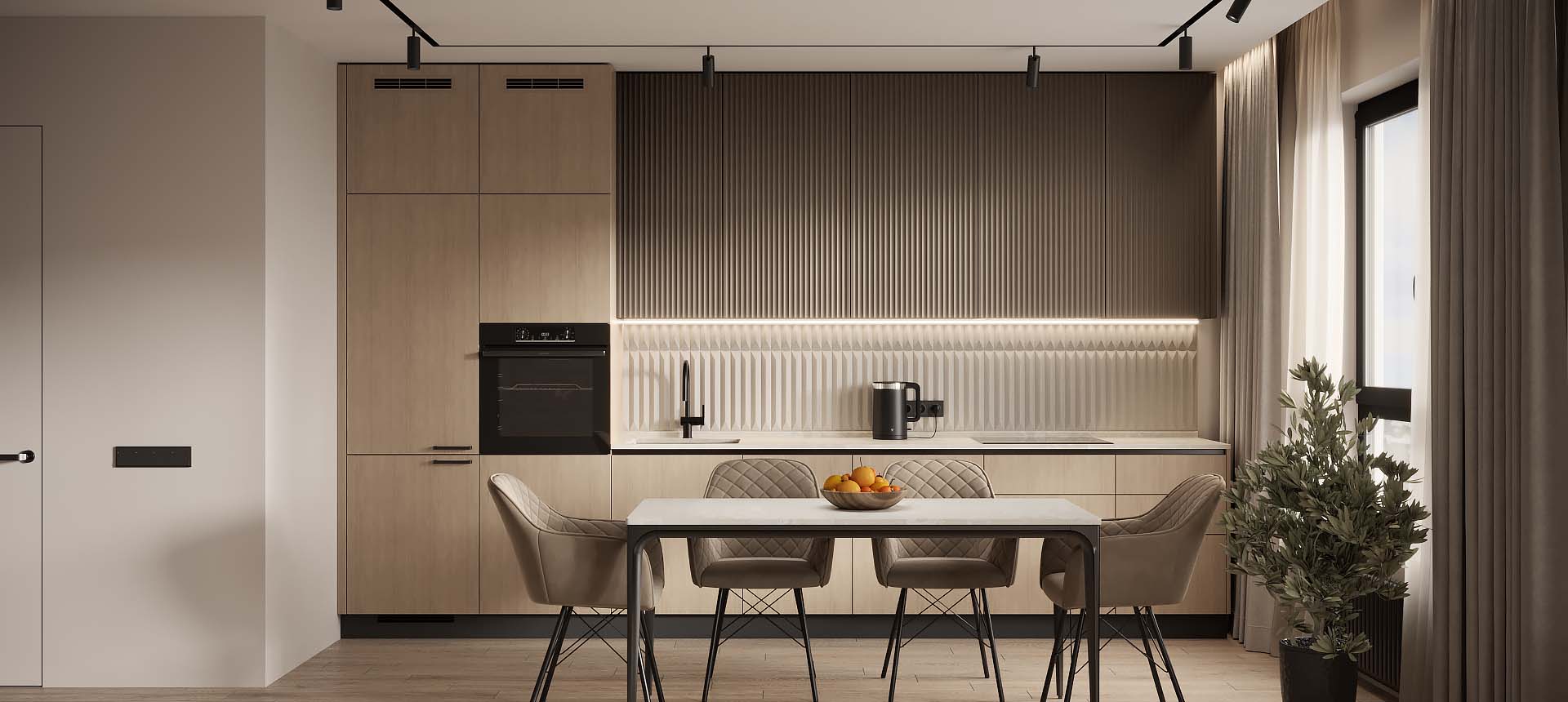 Светлая функциональная квартира в бежевых тонах для семьи из трех человек