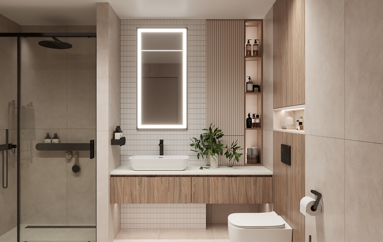 - большое прямоугольное зеркало с подсветкой по периметру,