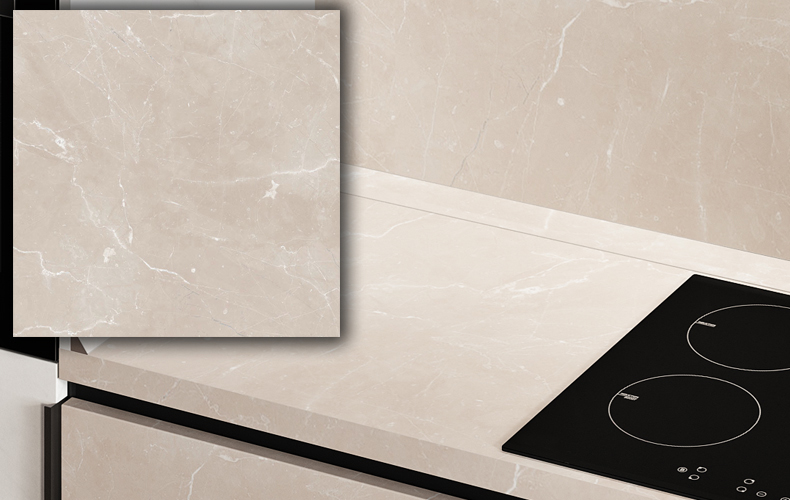 Основой столешницы является влагостойкое ДСП 18мм, облицованная HPL пластиком Egger с лицевой стороны и пластиком белого цвета с тыльной стороны. Возможна отделка столешницы HPL пластиком Egger с двух сторон, пластики должны быть одного цвета. Торцы столешницы облицовываются кромкой толщиной 0,8мм, имеющие те же названия цветов, что и пластики.