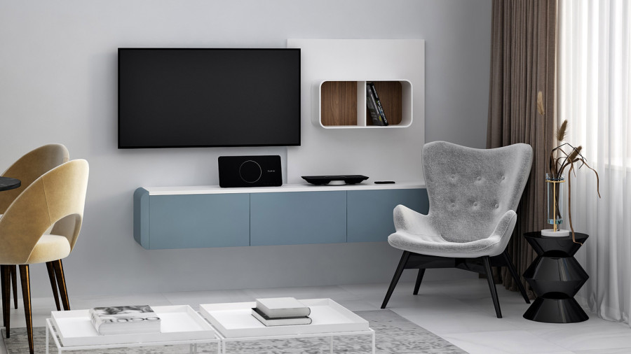 Стильная лаконичная гостиная Анта гола с гнутыми элементами из искусственного камня подойдет для современного интерьера кухни-гостиной. Контрастные фасады и вставки можно подобрать под любое стилистическое оформление помещения.
