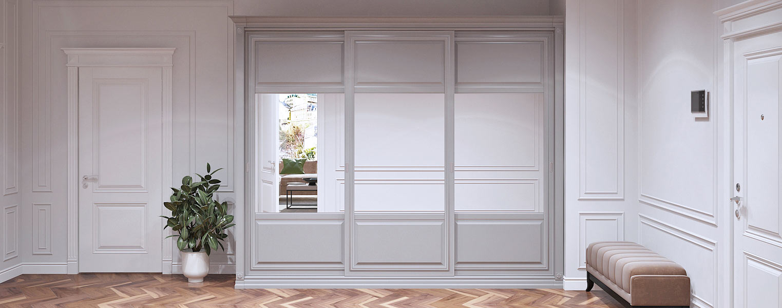 Трёхдверный шкаф-купе в прихожую в классическом стиле