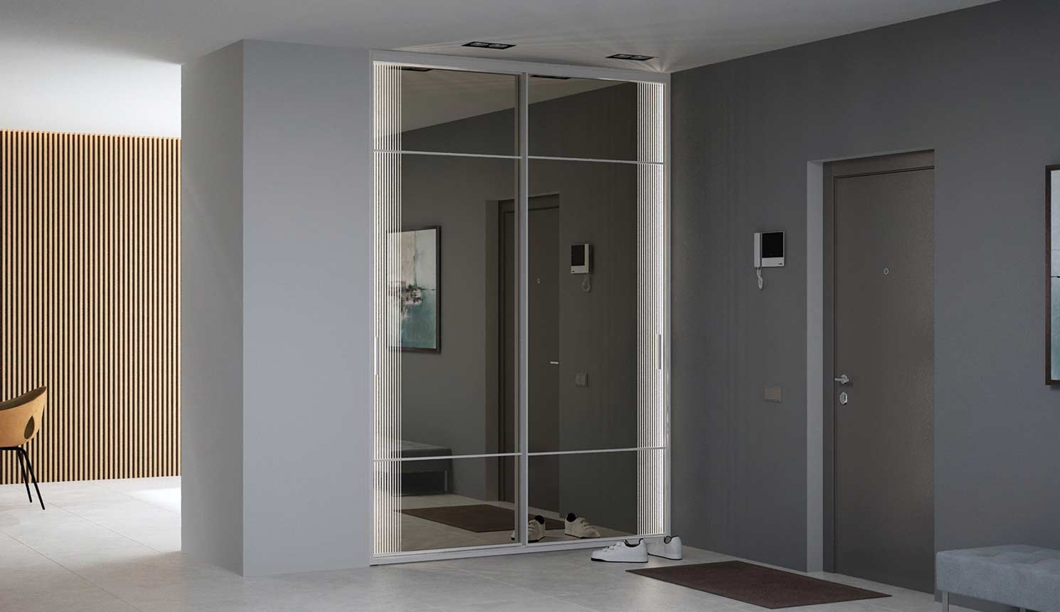 Встроенный шкаф со стеклом и зеркалом в спальню